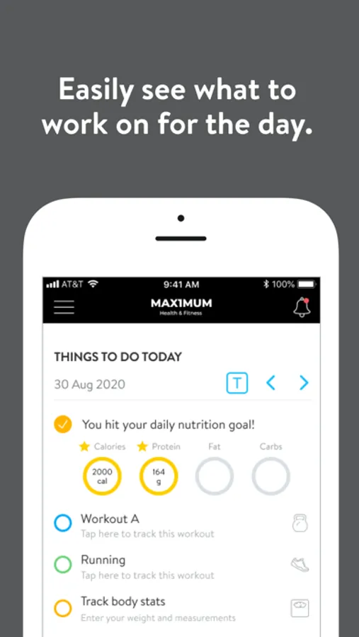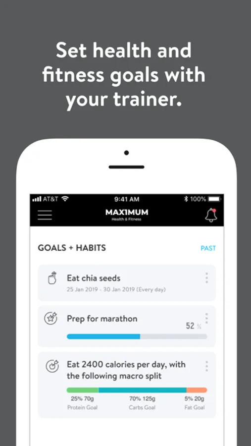 With the MAX1MUM Training App, you can start tracking your workouts and meals, measuring results, and achieving your fitness goals, all with the help from a health & fitness specialist.