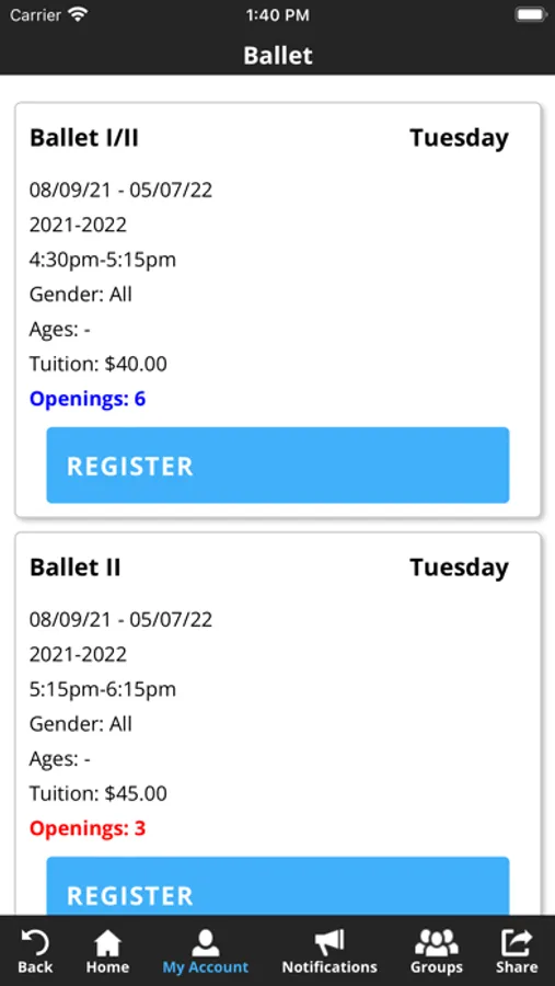 The Jenny's Dance Academy app allows you to manage your account with ease, register for classes, parties and special events. You'll also receive important notifications about class changes, closings, registration openings, special announcements, and upcoming events.