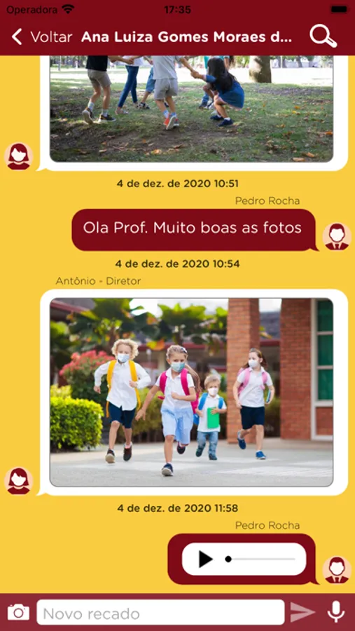 * Recados: envie um recado diretamente para o professor de seu filho ou para a diretora da escola e seja avisado quando receber uma resposta.