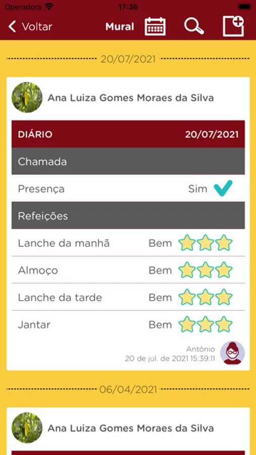 Com o app, você tem todas as funcionalidades necessárias para acompanhar o dia a dia de seu filho na palma da sua mão: