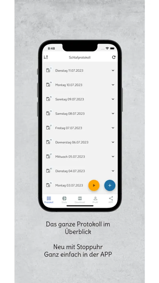 Die APP hilft dir den Überblick zu behalten. Protokolliere eine Woche für eine gezielte Auswertung des Schlafes deines Babys.