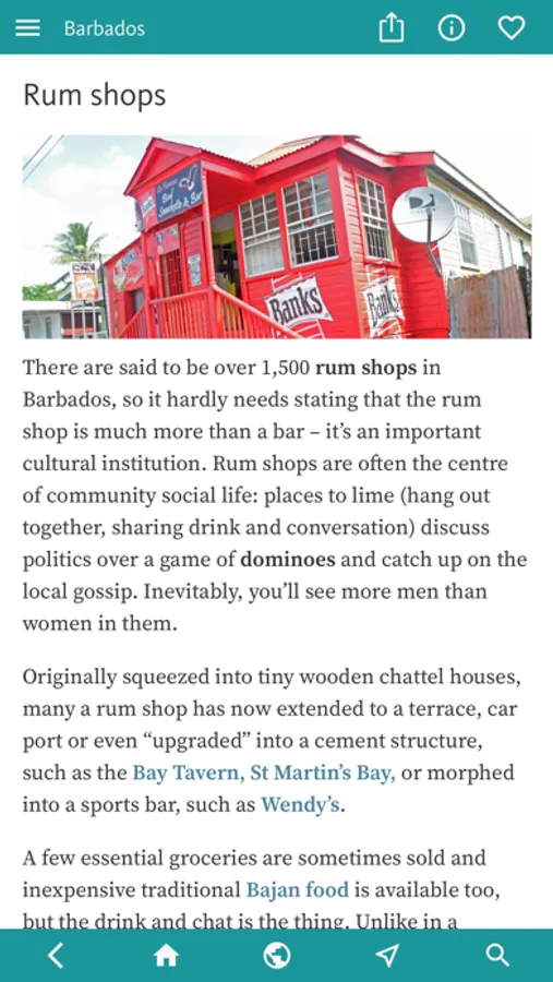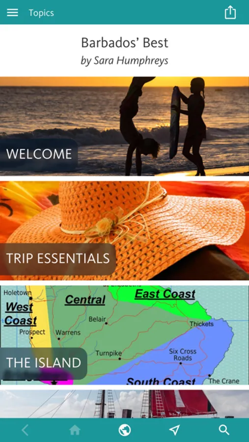 You’ll find all you need to enjoy the best of the island by theme in the next, INTERESTS & ACTIVITIES, section of the app. Here you’ll find an overview of interests as diverse as finding the best BEACHES; the finest places to sample RUM; an inventory of the WATER SPORTS (catamarans, sailing, diving, snorkelling, SUP, kayaking, surfing); and a thorough section on Barbadian HISTORY.