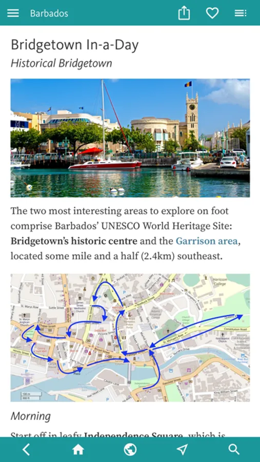 Then, an ITINERARIES and TOURS section suggests how you might start to explore the island, and includes an easy-to-follow walking tour of the main city, Bridgetown.