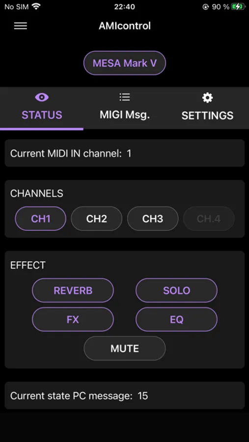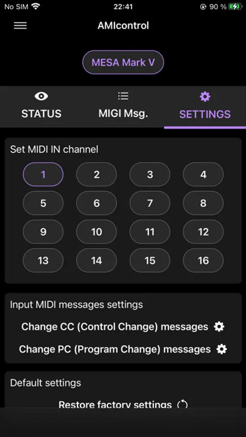 The AMIcontrol app works only with our midi switching devices - AMI interface series.