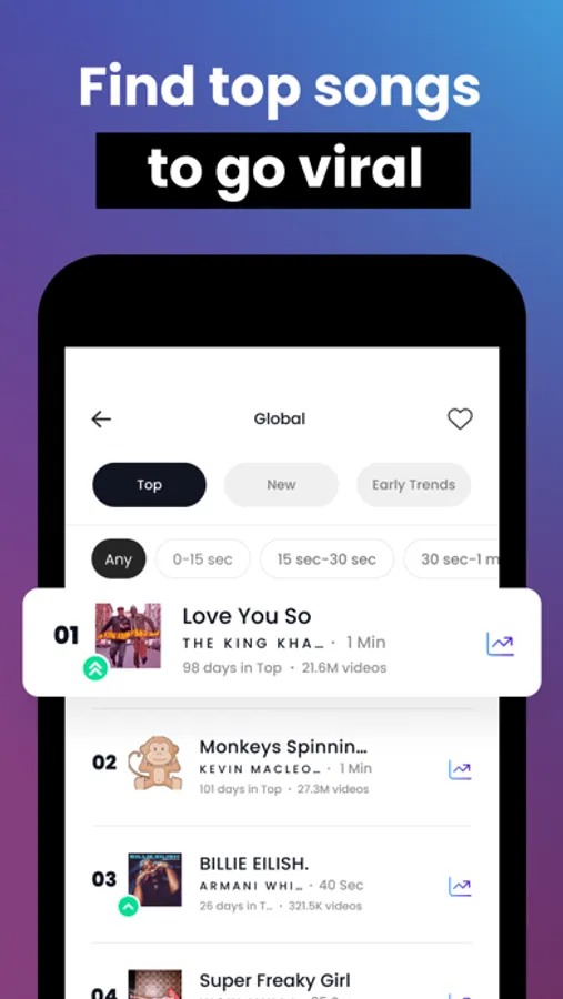 Our app helps you find trending songs and sounds for your TikTok video, and help you grow your audience and make your videos go viral.