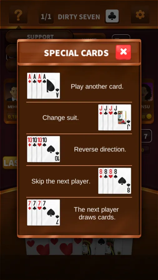 Alper Games proudly presents Pis Yedili HD (Dirty Seven); a Turkish variant of Crazy Eights for four players. Two decks of cards are used to play the game. There is a huge number of variations of this game with many different rules. We hope that you’ll love our version the most