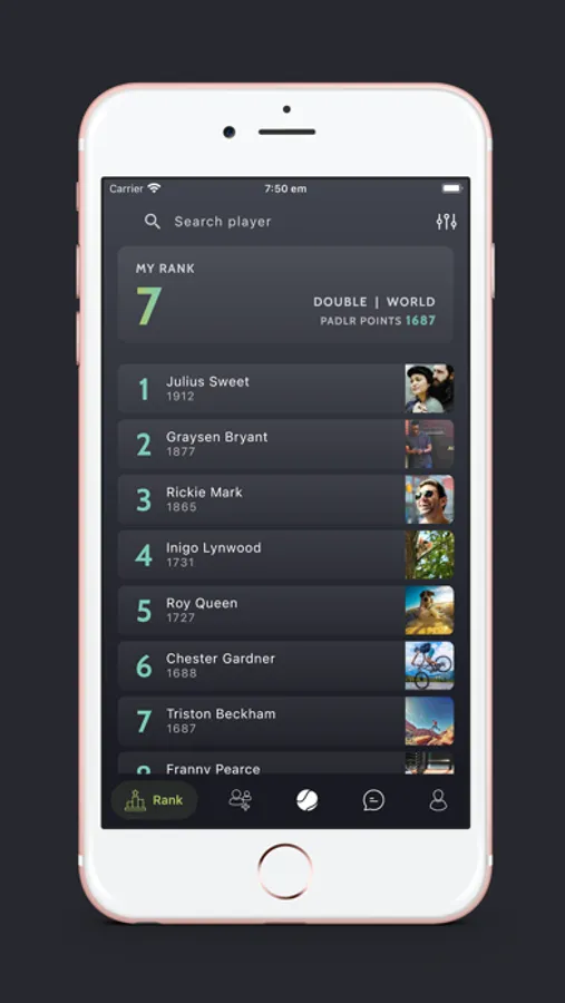 Padlr uses a form of elo ranking system like we know from chess or other e-sport platforms. Players who report a winning game will gain points based on ther win probability, the same applies when you lose. Each player start at the same level of points, and it will quickly level out as you play a couple of games. We call them Padlr Points and gaining more will soon become your biggest craving.