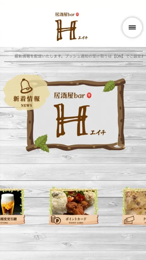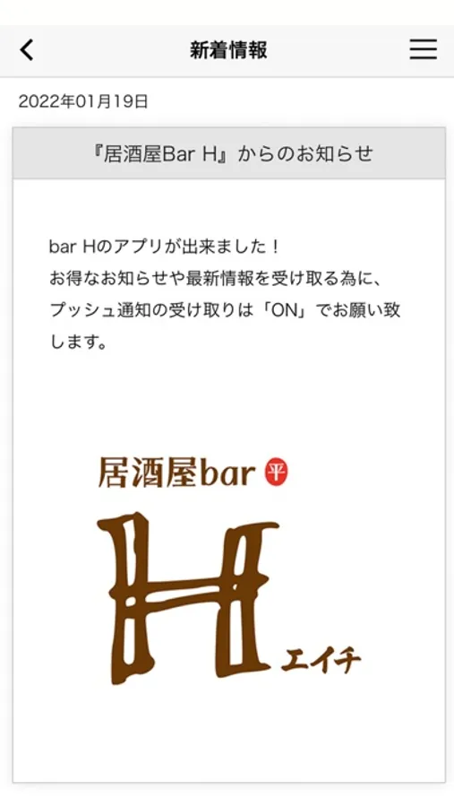・【居酒屋bar H/バーエイチ】からの最新情報をプッシュ通知で受け取れます。