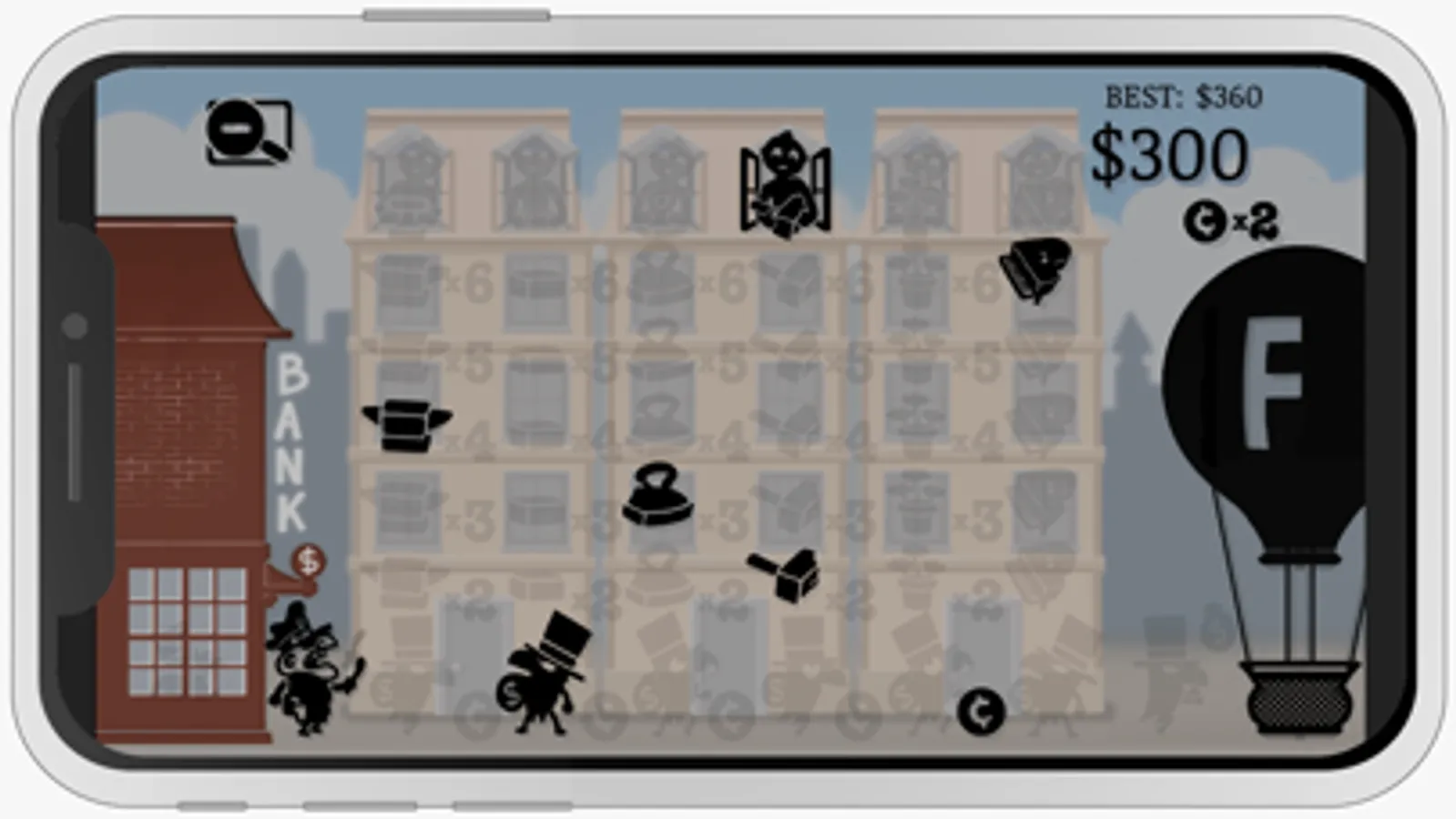GAME B:- Harder Level where Fiquette has to return back to the Bank from the Ballon to collect another bag of cash.