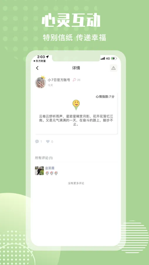 小7日给大家提供了一个宣泄情绪的平台,记录分享自己每周的心情,也许你会在小7日广场找到和自己志同道合的朋友,倾听别人,也倾听自己内心最真实的想法。