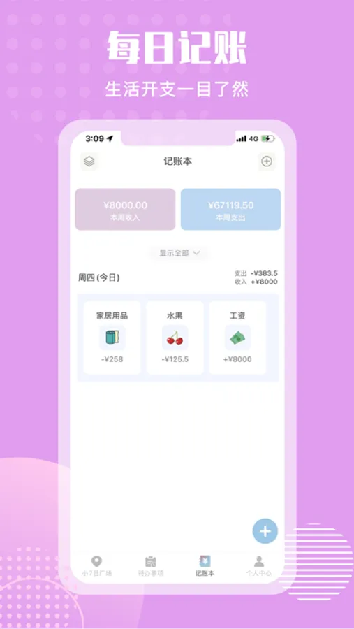 【周报】小7日每周会给你推送周报表,统计你一周的心情,待办和账单。
