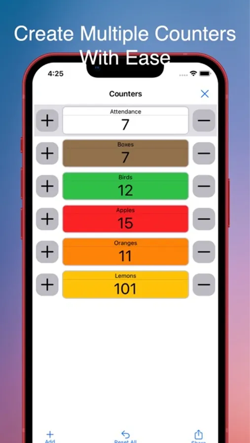 - Simple intuitive interface, just tap to count up and swipe down to count down.