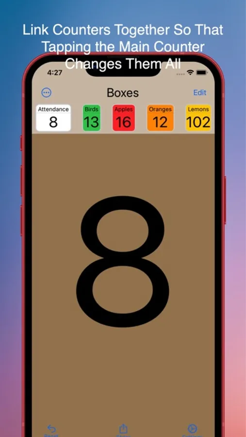 SimpleTally is an easy to use tally counter with a twist. What's the twist? You can link counters together so you can count multiple things at the same time. Keep your eyes on what you're counting and not on your device with simple counting gestures. It's available for your iPhone or iPad.