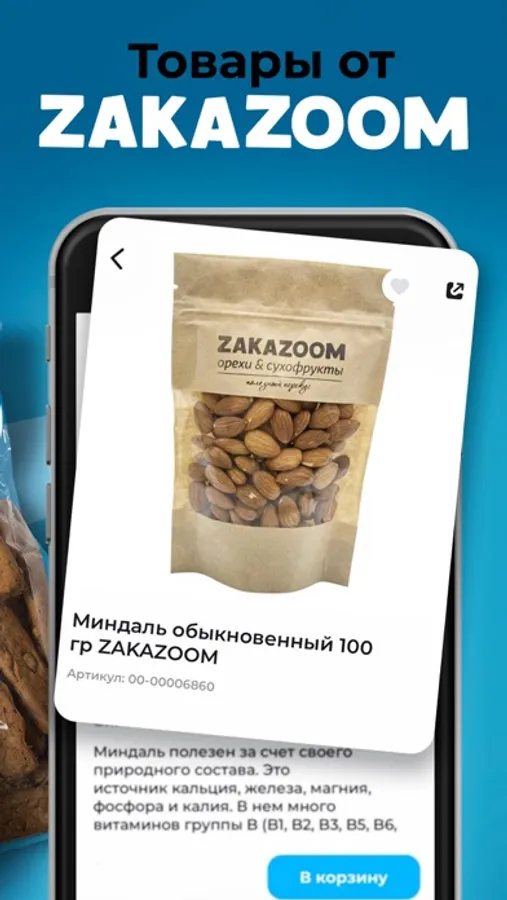 ZAKAZOOM - это ассортимент до 7000 ваших любимых товаров, строгий контроль качества товаров и упор на экологичность, свежесть и пользу. У нас вы найдёте, привычные товары из вашей потребительской корзины, а так же эксклюзивные и редкие позиции, которые выбирают те, кто ведет особый образ жизни и строит свой рацион исходя из личных убеждений.