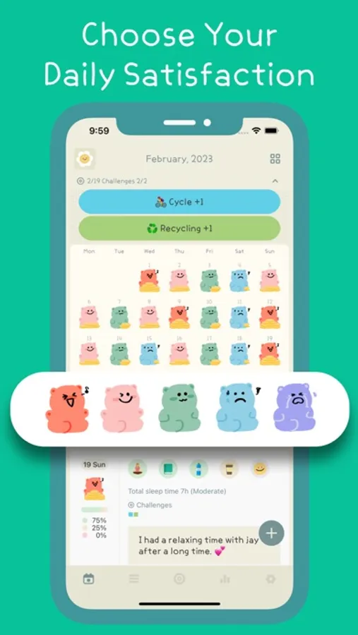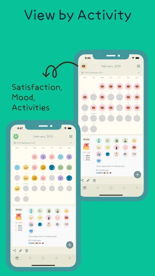 Through the monthly calendar, you can intuitively see the level of satisfaction, changes in mood, and frequency of habits.