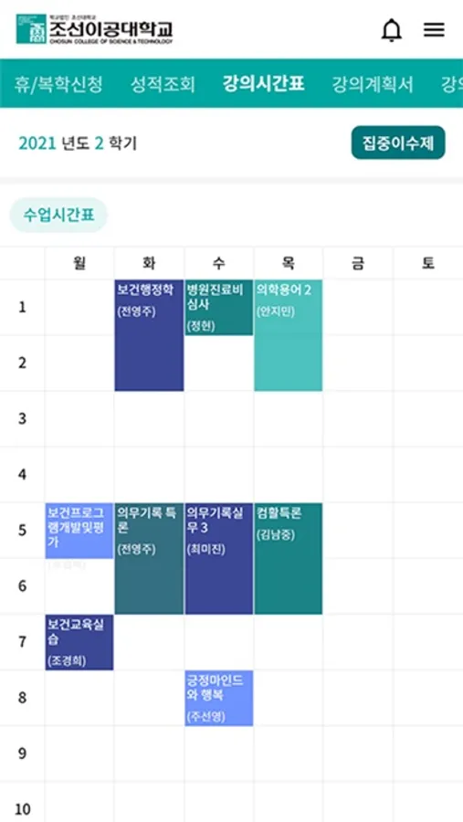- 휴복학,성적조회,강의시간표,강의평가 등 정보 제공