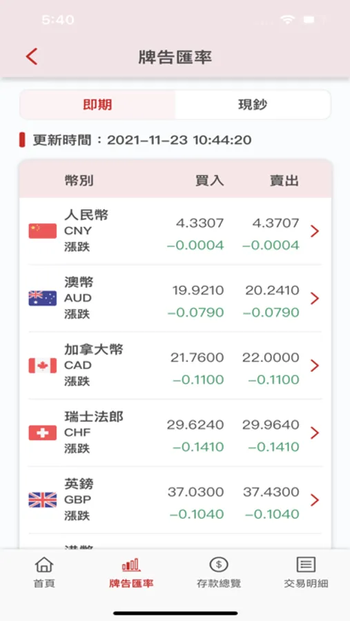 提供台外幣各類存款牌告利率、外幣即時與現鈔買賣匯率、趨勢圖