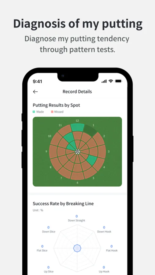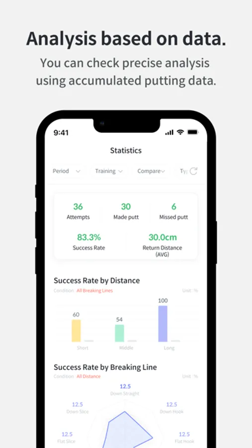 - Putts pattern trends can be analyzed by detailed data of launch / ball speed.