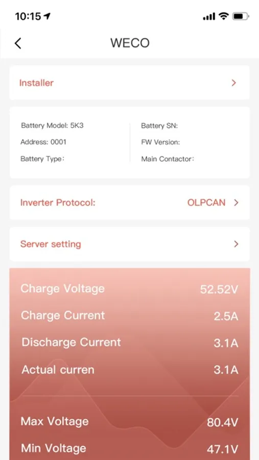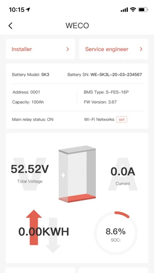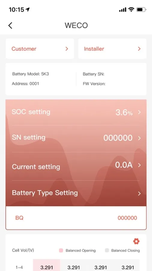 2) WeCo also provides a free cloud service for all customers to store their battery data and provides the appropriate infrastructure to obtain historical information on battery energy processes, any notifications, alarms and events typically generated by BMS batteries, and via The Bluetooth PCB WeCo is visible on the APP.