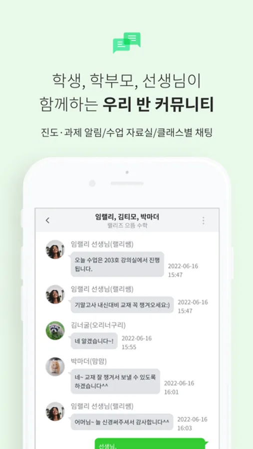 학원비 간편 결제, 우리 반 전용 채팅, 화상강의까지!