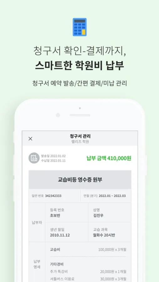 납부일을 잊어버릴 걱정도, 아이 손에 학원비 맡기지 않아도
