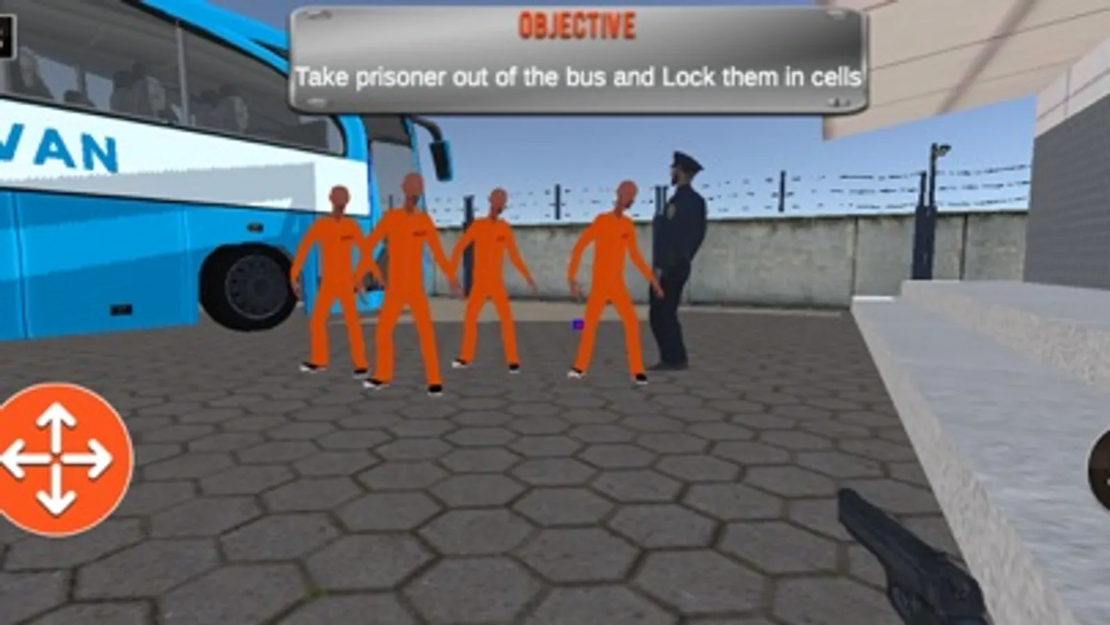 Start your adventurous day by reporting to the jail warden. Find your uniform and shooting gear. Go to the gym and do some training for the day. Escort the prisoners from the bus to their jail cells. One prisoner is looking nervous, he can be up to something dangerous. Search for him and check his database. Prison has become a fighting arena as two prisoners got into a fight. Catch them and punish them. If you are hungry, go to the mess and grab some food for yourself. An area of the prison is on fire, find a fire extinguisher and save the inmates. Take prisoners outside to the compound. Under strict security, two prisoners have attempted to escape jail. Shoot them down before they escape the jail. Prisoners can harm other officers as well. Make sure to punish such prisoners.