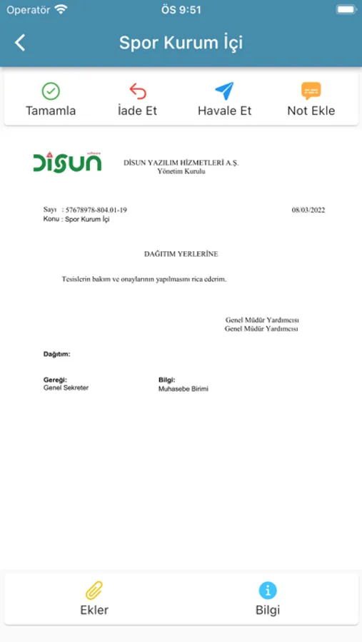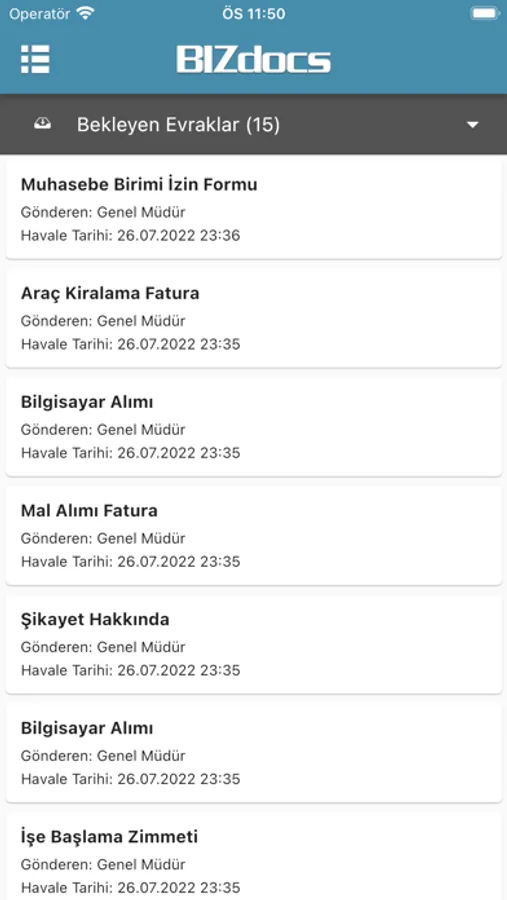 * BIZdocs® Mobil doküman yönetim sistemi ile size havale edilmiş evrakları görüntüleyebilir, görevi tamamlayabilir, iade edebilir veya havale edebilirsiniz.