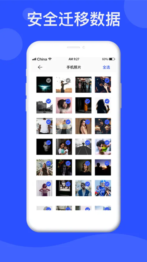 通过扫描二维码连接新旧手机,保证数据传输安全和传输速度。