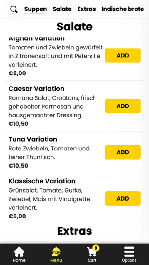 - Durchsuchen Sie die Speisekarte des Restaurants und sehen Sie sich alle anpassbaren Optionen im Voraus an