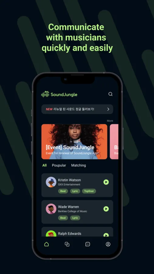 Producers can indicate their ‘specific position’ with our available sticker options of either Beat Maker (Beat), Lyricist (Lyric) or Topliner (Topliner). This allows other producers to immediately understand every producers position to efficiently match with the position you need for your project.You can receive detailed news of SoundJungle through the SNS accounts below.