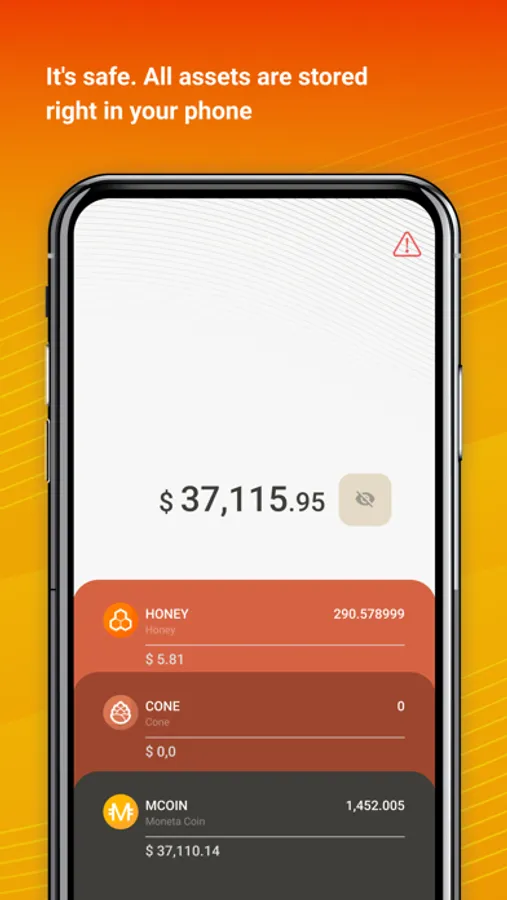 It's a completely secure solution. All assets are stored right in your phone and only you have access to the wallet, everything is anonymous and safe.