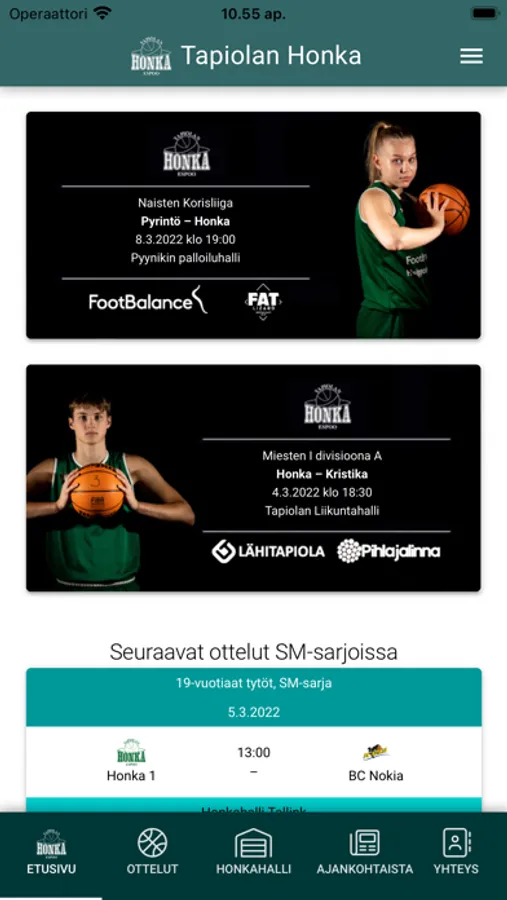Täältä löydät Tapiolan Hongan kaikkien joukkueiden ottelut, tulokset ja sarjataulukot. Voit valita omat suosikkisi.