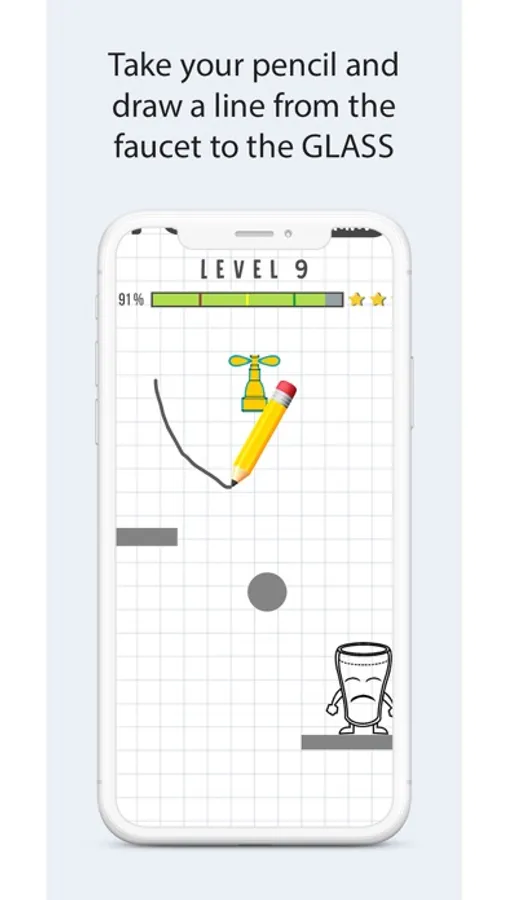 Can you draw a line from the faucet to the glass and try to fill the glass with water? Well then this is the game for you. Take your pencil and challenge yourself through 100"s of levels to make your glass happy. If you do you pass the level.