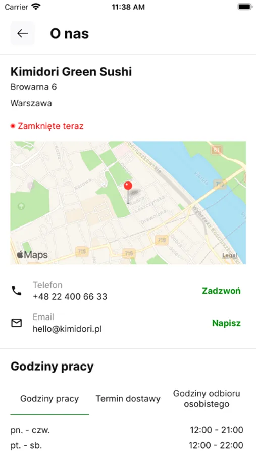 Oprócz zamawiania online aplikacja pozwala sprawdzić: