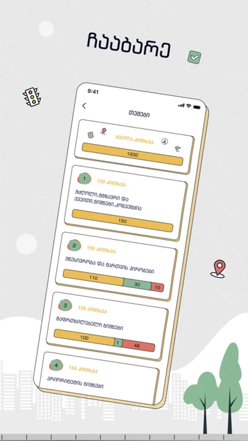 Learning is easy when you use the right tools. "Martvis Testebi" is the most detailed, categorized and intuitive solution for gaining theoretical knowledge for the Georgian driving licence exam. It allowed you to simulate mock exams as well as practice quizzes. The app remembers your correct answers and adjusts the tests accordingly. You can always go back to topics that you found difficult or easy. The functionality of the app is complemented by refreshing, flexible and intuitive design as well as pleasant animations that make the learning process pleasant