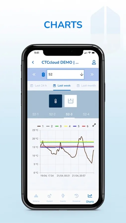 Aplicación que permite visualizar toda la información procesada por el software CTC+. Proporciona información sobre la temperatura y humedad del grano almacenado a diferentes niveles. Permite la consulta de históricos y gráficas así como un listado de eventos, alarmas y fallos registrados en la instalación