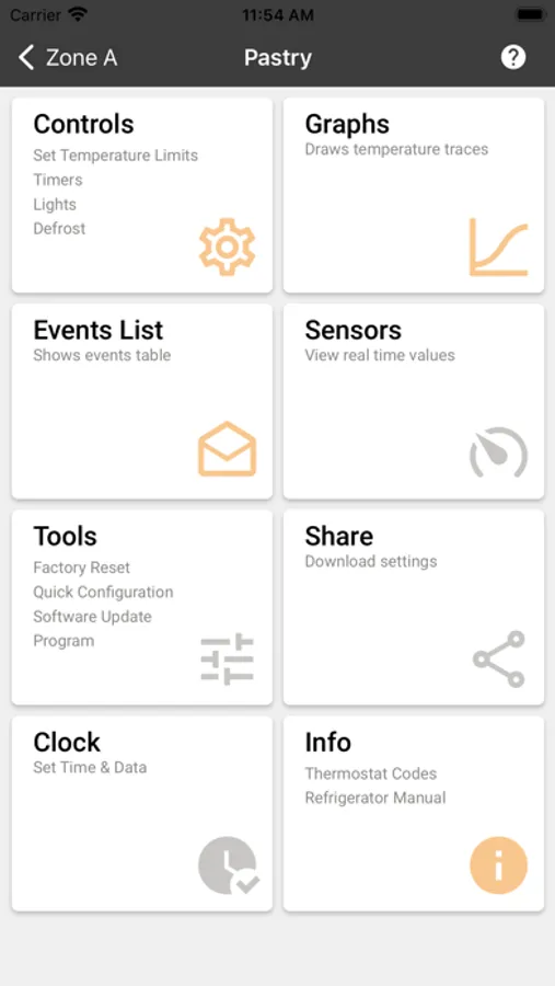 INFO: riporta le identità dell’unità frigorifera, del termostato e consente di ricevere il manuale d’uso dell’unità frigorifera
