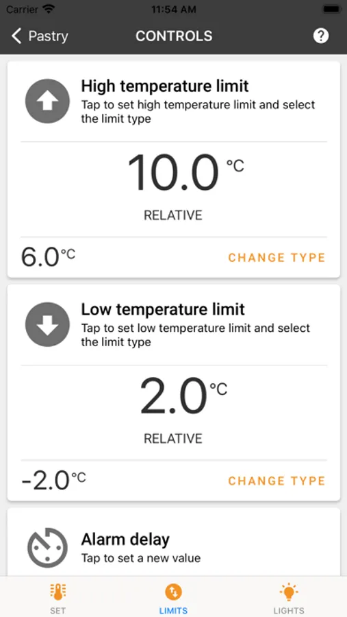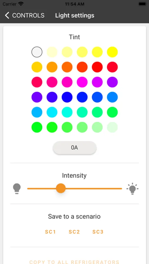 CONTROLS: permette l’impostazione del setpoint, dei limiti di temperatura, degli orari di spegnimento luce, di intensità, colore e temperatura delle luci, di accensione dell’unità frigorifera e l’avvio di uno sbrinamento.