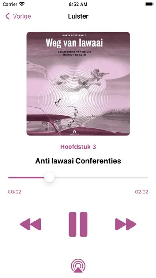Weg van lawaai verscheen in 2019 als boek met audio CD’s bij Uitgeverij Rubinstein. Het werd gemaakt door Karin Bijsterveld in samenwerking met Rubinstein en Beeld en Geluid Hilversum. U hoort de stem van Rik van de Westelaken.