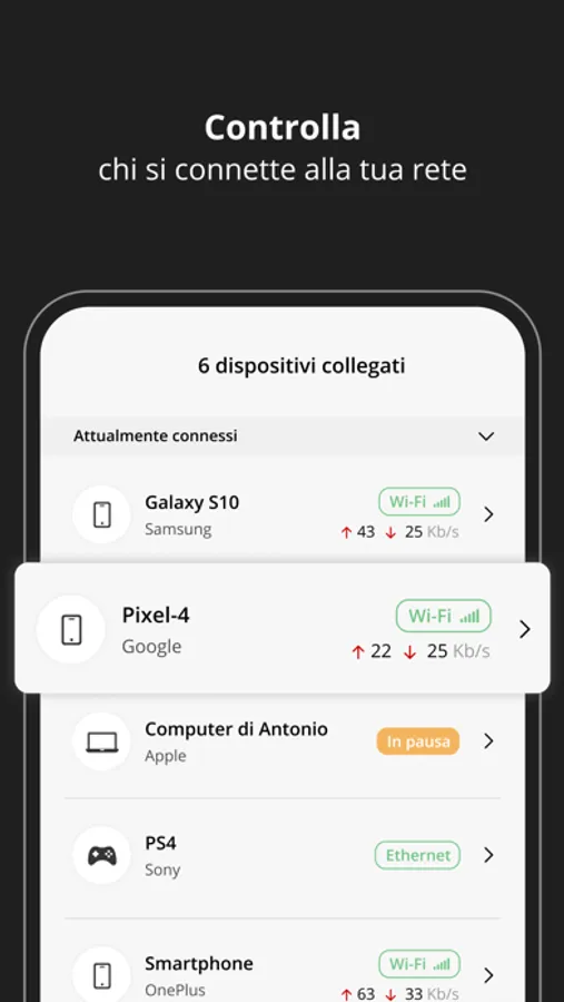 Verifica i dispositivi connessi alla tua rete e controlla la velocità di navigazione di ognuno.