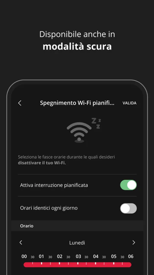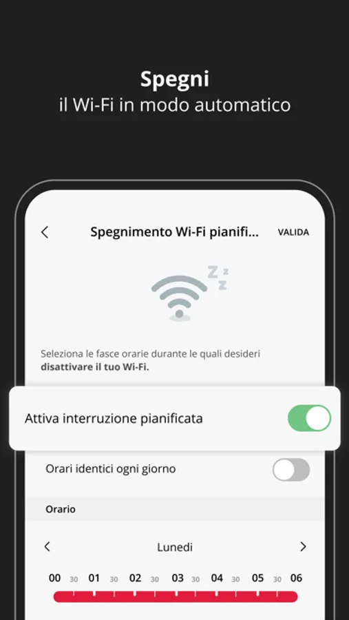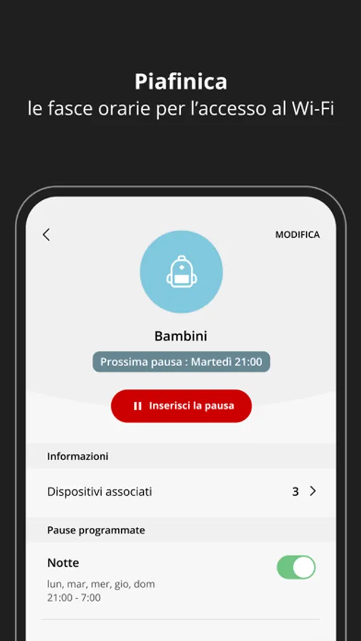 Ritagliati un momento di digital detox, impostando lo spegnimento automatico della connessione nelle fasce orarie desiderate.
