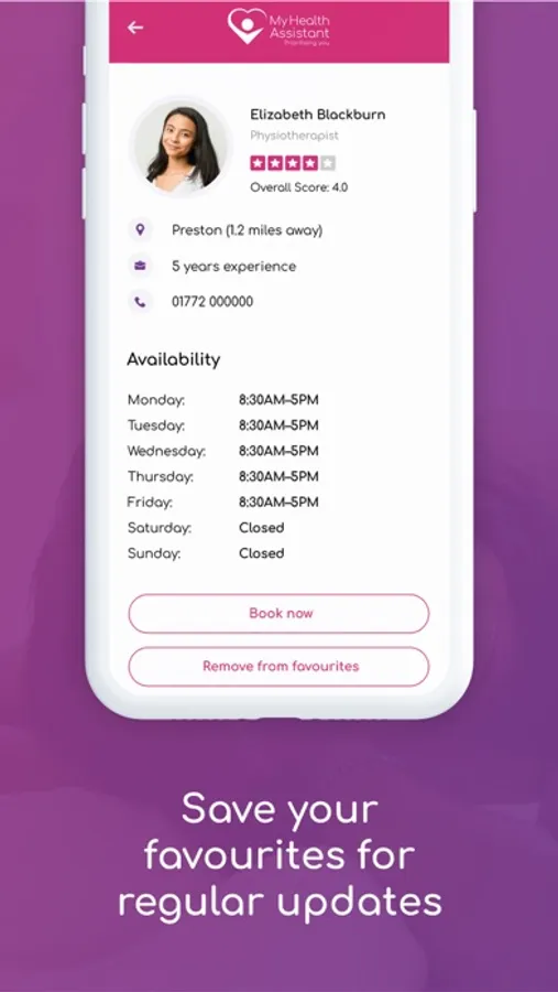My Health Assistant provides easy access to private healthcare services and treatment options, enabling you to take control of your health and decide on the best option for you. Choose your own local healthcare provider and discuss the treatment options that are best for you. Some of our professionals include;