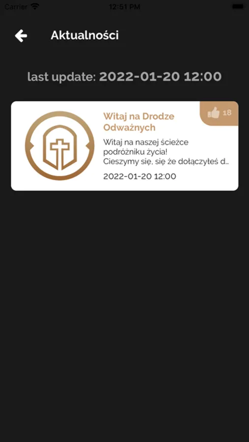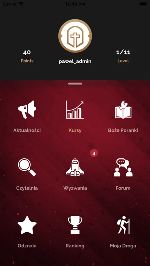 Aplikacja Droga Odważnych zawiera kursy formacyjne z obszarów rozwoju duchowego, osobowego i fizycznego. Po wybraniu kursu, który Cię zaciekawi, otrzymasz każdego dnia małą porcję wiedzy i inspiracji (maksymalnie 15 minut): artykuł, konferencję, świadectwa mężczyzn, inspirujące postacie, przestrzeń na czytanie Pisma Świętego. Każdy przerobiony moduł i kurs to punkty. Im więcej punktów, tym więcej nowych treści, z którymi możesz się zapoznać.