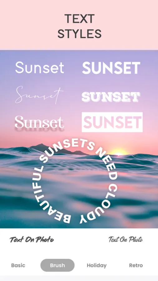 Text Art makes it easy to insert text to photos. Make quotes, statement or wish someone through Text Art. You can create photo text yourself with ease.