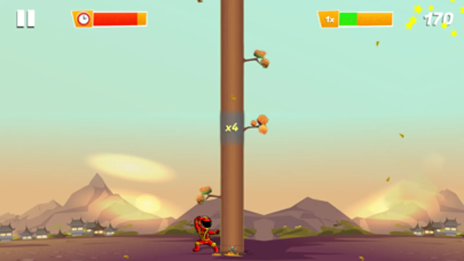 Let's kick the tree stump and earn the highest points. Avoid the branches coming down to hit you. The faster you kick the stumps, the more points you will earn. A timer in the game can be extended if you reach the blue lantern. Some lanterns you reach are double points. There are daytime and nighttime scenes. Left finger on left screen: tap to kick; Right finger on right screen: tap to kick.