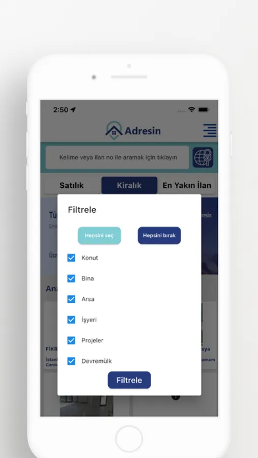 • Harita Üzerinde arama yaparak yakın konumdaki ilanları inceleyebilirsiniz