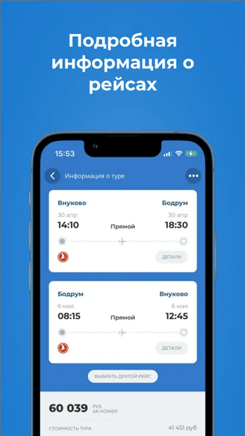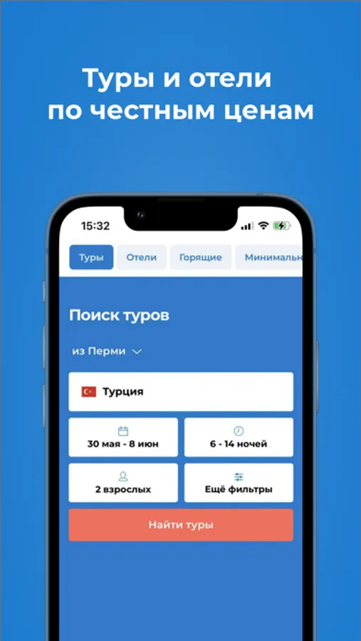 Бесплатное мобильное приложение по поиску туров и отелей от ведущего российского поисковика Tourvisor. С успехом используется и туристами, и турагентами, позволяет менее чем за минуту сравнить предложения, сориентироваться по минимальным ценам и подобрать лучший вариант для отдыха. Достаточно добавить в форме поиска город вылета, если выбираете тур, куда хотите поехать (страна, курорт или город), даты, продолжительность отдыха, состав туристов и нажать кнопку «Найти».