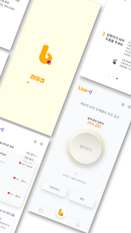 "LivQ" 라이큐는 필요한 상황에 즉각적으로 적합한 도움을 받지 못하는 어려움에 대한 불편함을 해소하기 위해 물리적으로 멀리 떨어져 있어도 마치 한 자리에 있는 것처럼 만드는 원격지원 시스템으로 사용자에게 적합한 최선의 솔루션을 제시 할 수 있게 연결해주는 어플리케이션입니다. 필요한 도움을 주고받으세요!