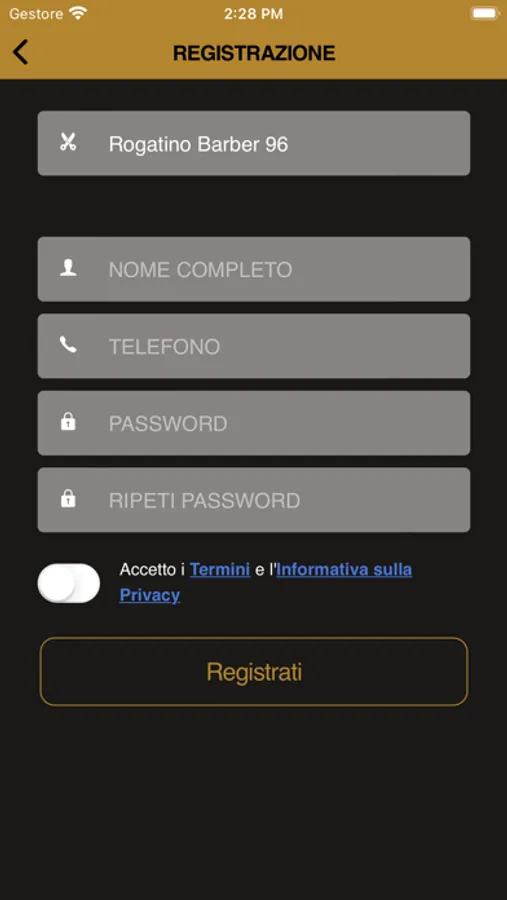 • Iscrizione con il proprio numero di telefono, nome, cognome;