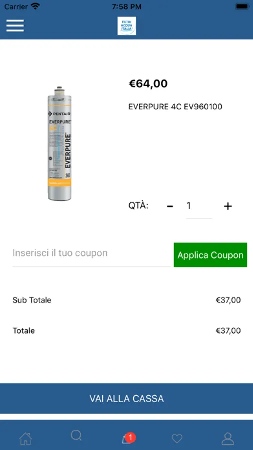 Filtri Acqua Italia è tra i primi e-commerce specializzati nella vendita online di ricambi e componenti per il trattamento dell’acqua, tra i principale Marchi Everpure Filtri che effettuano la micro filtrazione dell’acqua. Leader nella vendita online di cartucce d’acqua filtranti, cartucce lavabili, cartucce polipropilene, contenitori per filtri acqua, filtri a carboni attivi, filtri carbon block, filtri e ricambi per osmosi inversa, addolcitori acqua, bombole Co2 per erogatori e gasatori domestici.